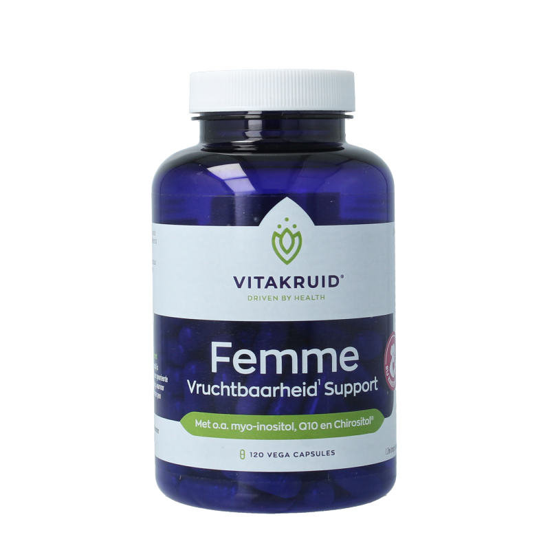 Vitakruid Femme vruchtbaarheid support met o.a. myo-inositol, Q10 en Chirositol®.